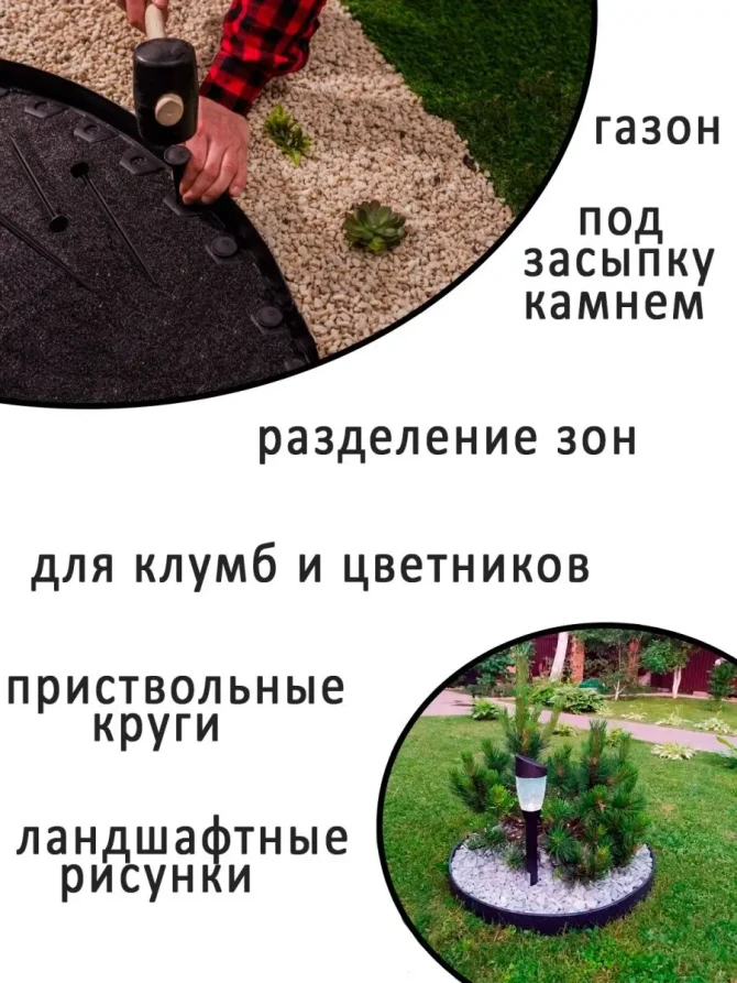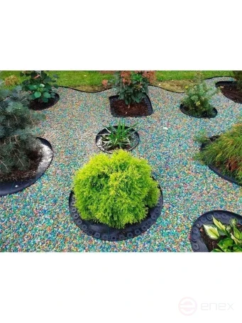 Mango Geoplastboard Flexible plastic garden curb is 10 meters long, complete with 30 mounting stakes. It is used in the landscaping of suburban areas, as a fence for beds, flower beds, for the garden and vegetable garden, ideal as a garden decor, separation of lawn and mulch, the formation of gravel paths, dry streams, alpine slides and other elements of landscape design. The product is made of high-strength polypropylene, it is not subject to corrosion and rotting. The curb easily tolerates temperature conditions from minus 50 to plus 70 degrees.