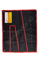 OmegaMax Trollly tool case, rigid skin, black, 28 pockets, 1 digital lock, 1 document compartment, 2 locks, 2 tool panels, lower half with adjustable jumpers, rotating thrust bar.