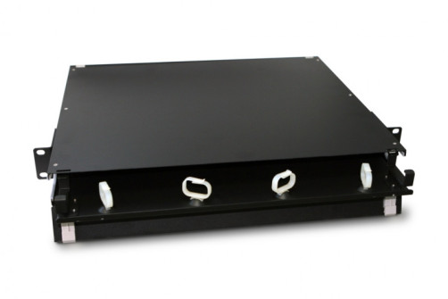 FO-19BX-1U-D1-3xSLT-W120H32-EMP Patch panel 19” universal, empty case, 1U, 1 pull-out tray (drawer 1U), 3 slots (3x1), accommodates 3 FPM panels with adapters or 3 CSS optical cassettes 120x32 mm