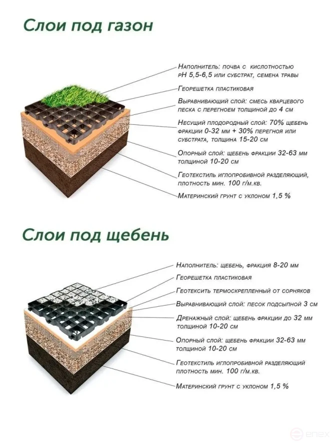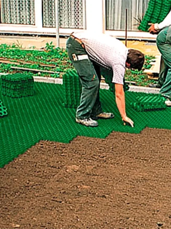 This geogrid is ideal for use in parks, event venues such as fairs and festivals. It can also be used to create pedestrian garden paths, playgrounds and sports grounds, as well as to strengthen slopes. The use of a lawn grate allows you to preserve the natural appearance of the landscape, while providing functionality and ease of use.