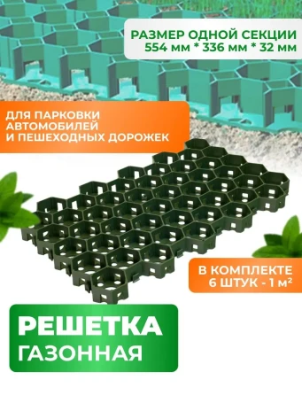 Due to its cellular structure, the lawn grate effectively distributes the load, protecting the root system of the grass and preventing the formation of ruts. Reinforced stiffeners provide additional strength, which is especially important for areas with heavy traffic, such as driveways or barbecue areas. The rib thickness is 3 mm, which guarantees durability and reliability of the structure.