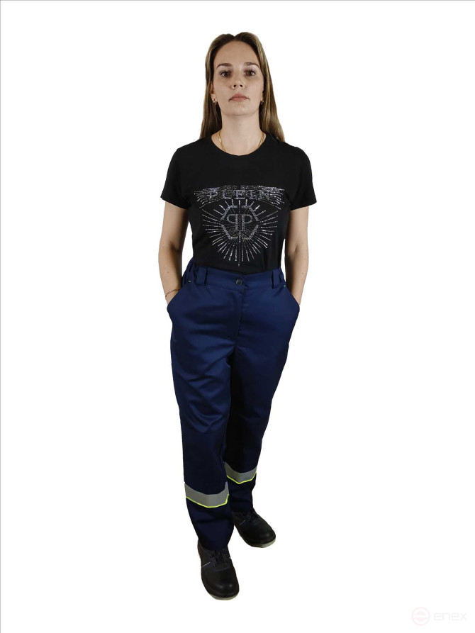 The Southern Latitude women's summer work suit is an excellent choice for those who want to provide effective protection against common industrial pollutants. The costume consists of a cropped jacket and blue trousers with cornflower blue inserts.
