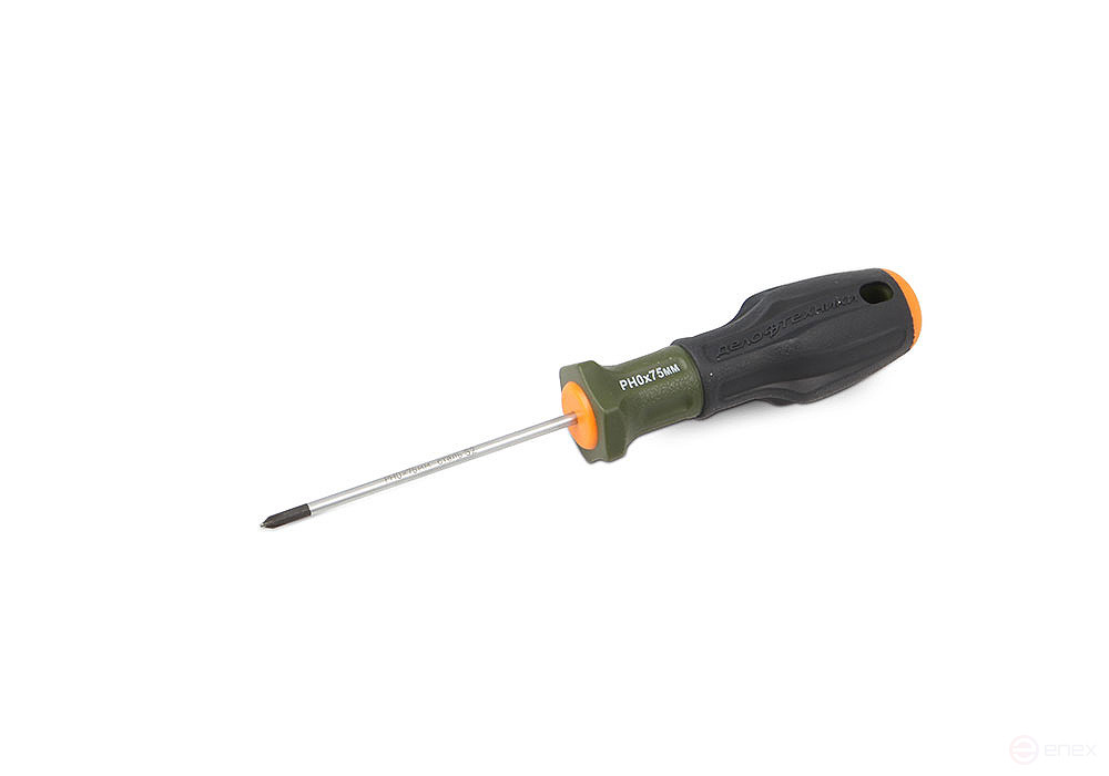 The easy-to-use screwdriver is designed to perform both light torsion and greater force; the thoughtful shape of the handle, consisting of a rubberized element and plastic resistant to aggressive substances, is securely fixed in the hand at the moment of torsion and prevents the screwdriver from rolling down an inclined surface.
