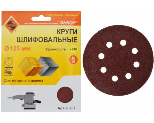 Grinding circles F125 mm, K240, on a sticky basis with holes, 5 pieces, for wood and metal