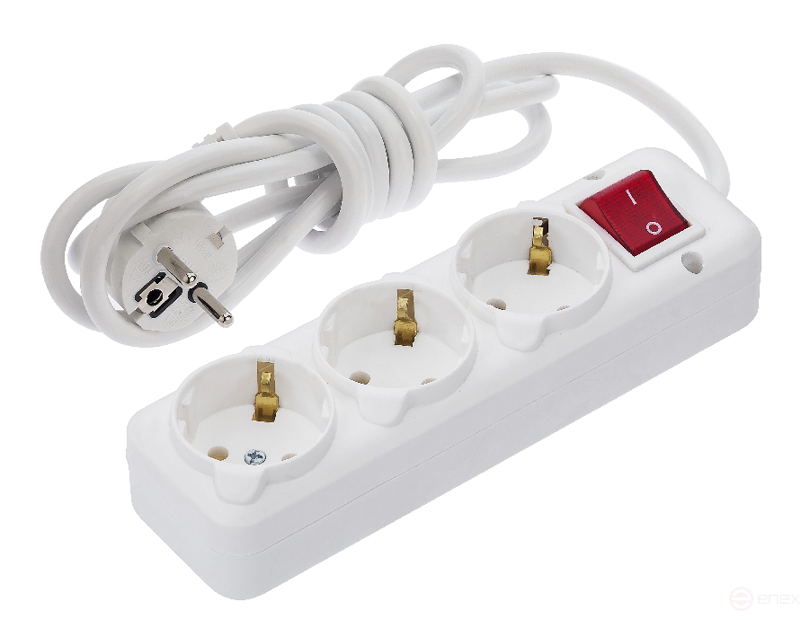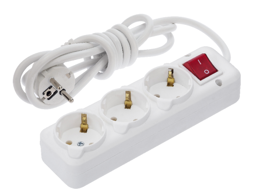 NE-AD network extension cable with earthing and switch, 3 sockets, 3 meters