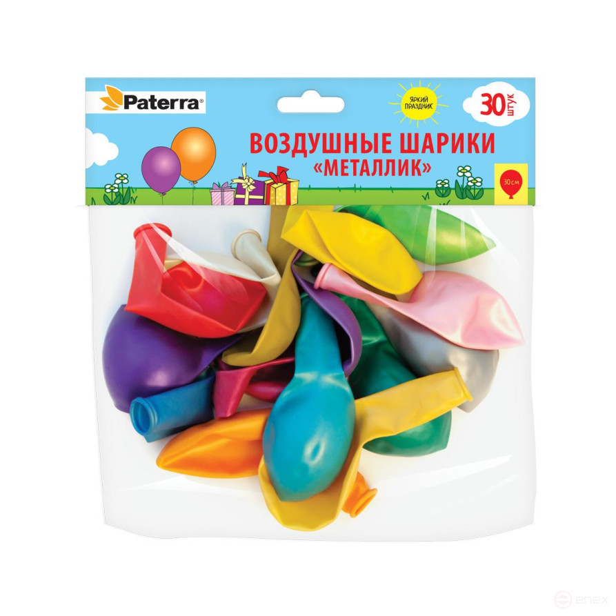 Metallic Paterra balloons, 30 cm, round, multicolored, without pattern, 30 pcs.