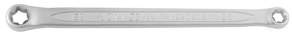 A key with an annular working part. It is used for servicing threaded fasteners equipped with heads having an E-TORX working profile. It is made of chrome-vanadium steel, hardened, and has a chromium-nickel coating. Double-sided cranked ring wrenches, better known to consumers as cap wrenches or simply ring wrenches, are wrenches having a rounded shape of the working part, which allows the fastening connection to be covered from all sides during unscrewing or twisting operations. Thus, cap wrenches are indispensable when working with tight fasteners, they allow, due to their shape, to make greater efforts than when working with horn wrenches that have only two sides of contact with a nut or bolt, which causes the popularity and demand of ring wrenches on the market.