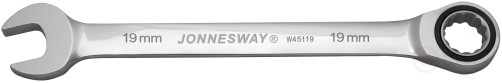 The combination wrench is a design combining a horn profile and a cap profile with a working part with a built-in ratchet mechanism. The combination of two one-dimensional profiles compensates for the disadvantages of each separately. The ratchet mechanism with a 72-tooth wheel provides high transmitted torque due to the use of chrome vanadium steel, hardened in a special way. The small, 5° reverse stroke makes the key indispensable in a confined workspace.