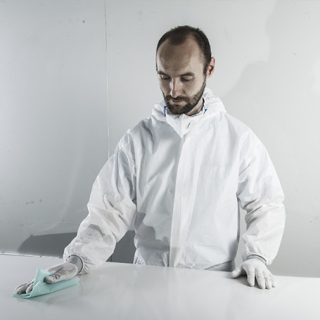 JPC100 is a lightweight protective jumpsuit with a hood made of non—woven material (polypropylene) 40g/m2. The jumpsuit protects against dust, dirt and other solid particles.