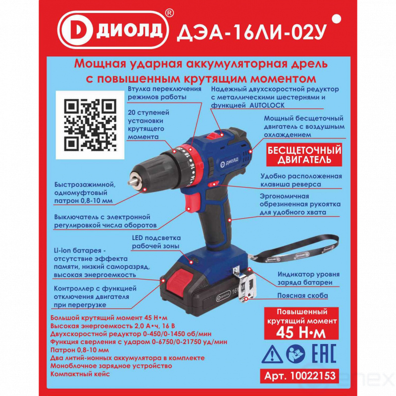Аккумуляторная дрель-шуруповерт Диолд ДЭА-16ЛИ-02У