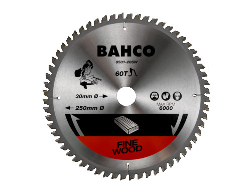 Пильный диск по дереву (250x30 мм, Z=60, мелкий зуб 0°)