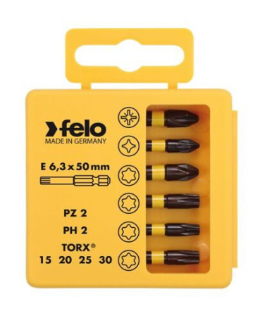 Felo Набор из 6 ударных бит Tx Impact 50 мм в кейсе размерами Tx 10 / Tx 15 / Tx 20 / Tx 25 / Tx 30 / Tx 40. Набор предназначен для работ с крепежом типа Torx, в том числе с использованием ударного инструмента.