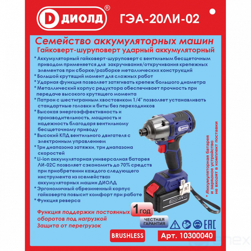 Гайковерт-шуруповерт ударный аккумуляторный ГЭА-20ЛИ-02 (без батареи и ЗУ)