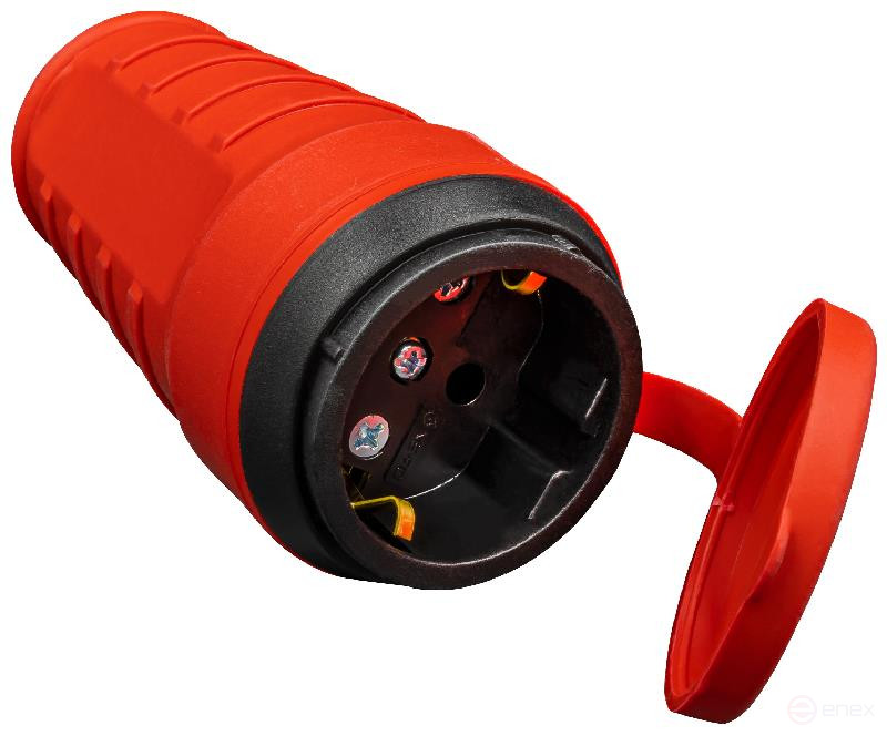 Гнездо штепсельное NE-AD с крышкой, с заземлением, красное, каучук