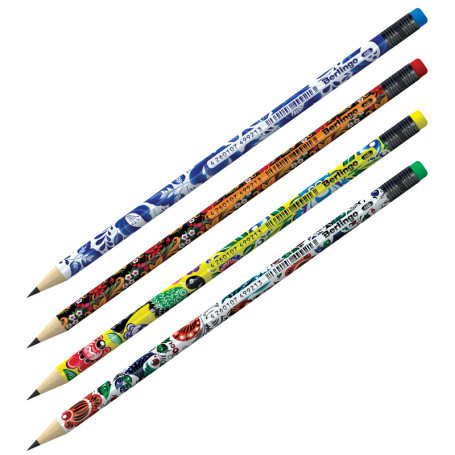 Карандаш ч/г Berlingo "Traditional" HB, круглый, заточен., с ластиком, ассорти