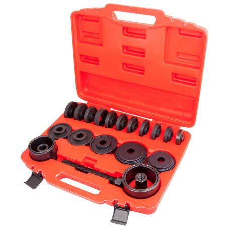 Комплект оправок для снятия подшипников ступиц 23 предмета AV Steel AV-922014 предназначен для монтажа/демонтажа сайлентблоков, подшипников.