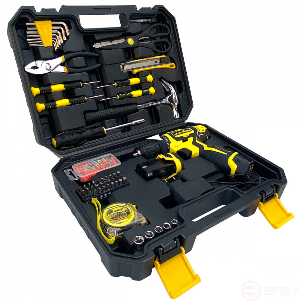 Набор инструментов с шуруповертом торговой марки "GOODKING" произведён специально для ремонта и строительства. Универсальный состав набора позволит вам обходиться без дополнительных инструментов и оснастки. Каждый этап изготовления контролируется в соответствии с международными стандартами. Особенности:
