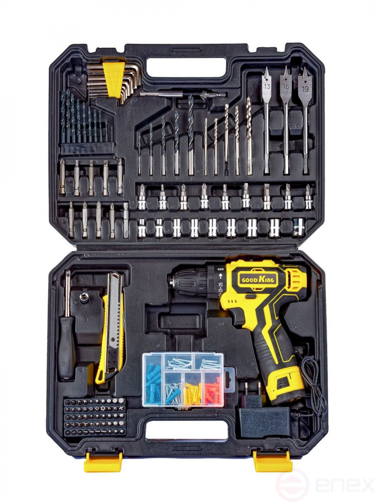 Набор инструментов с шуруповертом торговой марки "GOODKING" произведён специально для ремонта и строительства. Универсальный состав набора позволит вам обходиться без дополнительных инструментов и оснастки. Каждый этап изготовления контролируется в соответствии с международными стандартами.