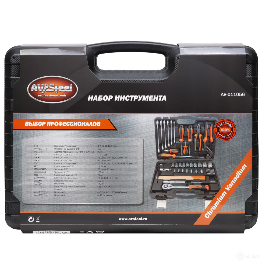 Набор инструментов AV Steel 56 предметов, 1/4", 1/2", профессиональный