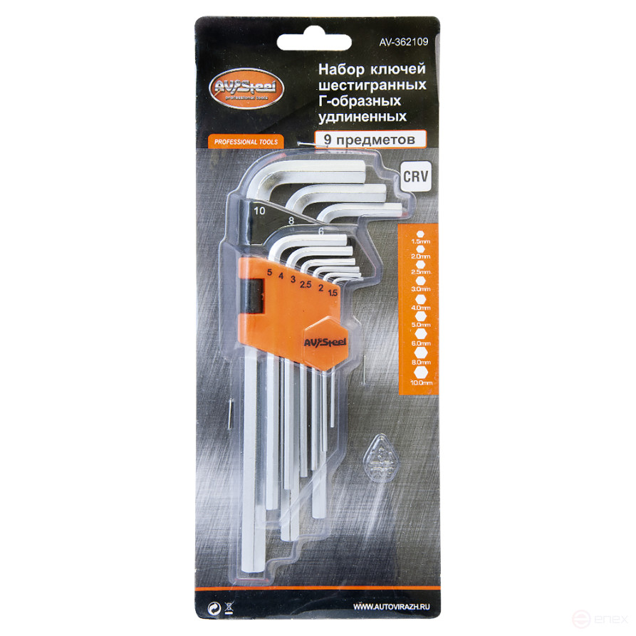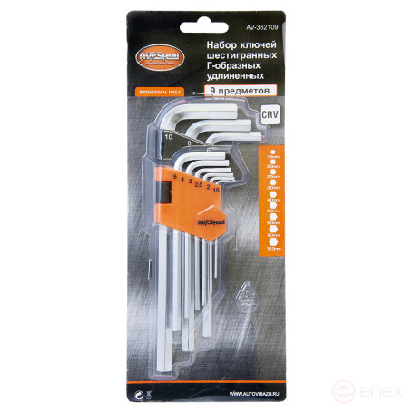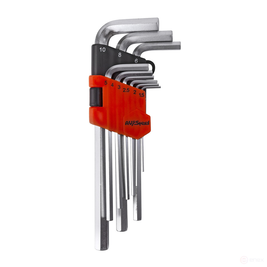 Набор ключей Г-образных HEX удлиненных 1,5-10 мм AV Steel 9 предметов