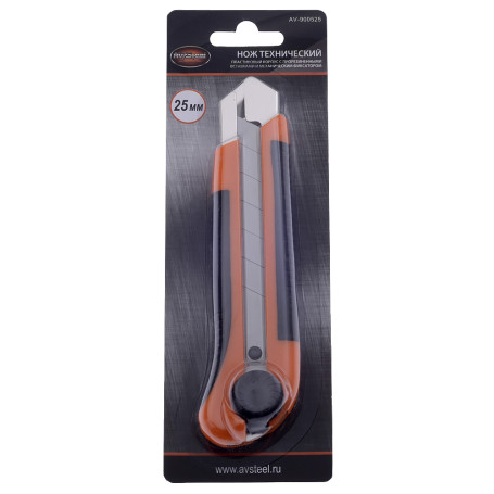 Нож пластиковый с прорезиненной ручкой с винтовым фиксатором, 25мм