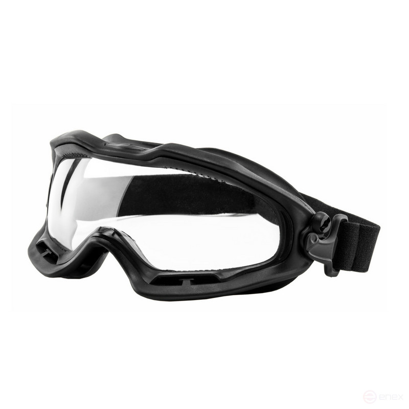 Двойной корпус: внешний - термостойкий пластик, внутренний - мягкий Evoprene, разработан для применения с фильтрующими полумасками и респираторами. Регулируемая наголовная лента шарнирно соединена с корпусом, что позволяет менять угол наклона очков.