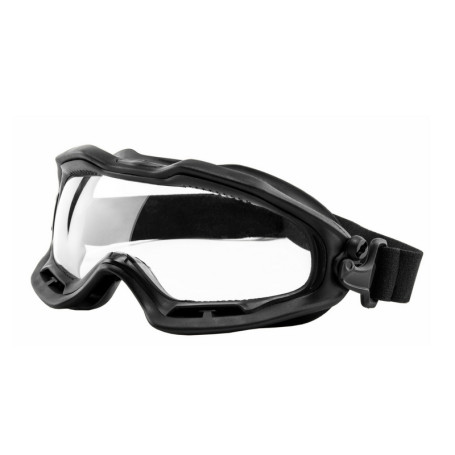Очки c непрямой вентиляцией, увеличенным панорамным обзором, уникальной системой вентиляции. Защитное сферическое стекло из бесцветного поликарбоната (PC StrongGlass) с влагостойким, двусторонним супер твёрдым не запотевающим покрытием, не теряющим свои свойства во времени.