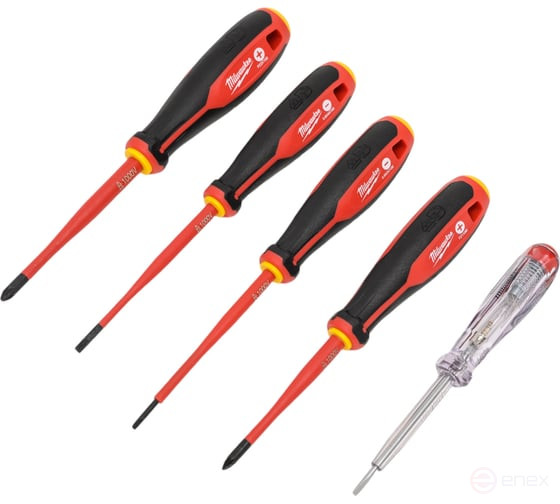 Отвертки диэлектрические VDE трехгранная рукоятка набор 5ед. (SL 3/SL 4/PZ1/PZ2/тестер)