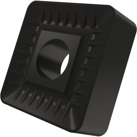 Односторонняя негативная пластина для токарной обработки, квадратная с диаметр вписанной окружности 25.4 мм, 7.94 мм толщина, 2.4 мм радиус при вершине, точность по ISO M, стружколомающая геометрия SR, закругленные режущие кромки с фаской, сплав T9325, покрытие MT-CVD, функционально-градиентный субстрат WC-Co, применение по ISO P15-P35 и M10-M30, черновая и тяжелая черновая обработка заготовок из конструкционных сталей и нержавеющих сталей