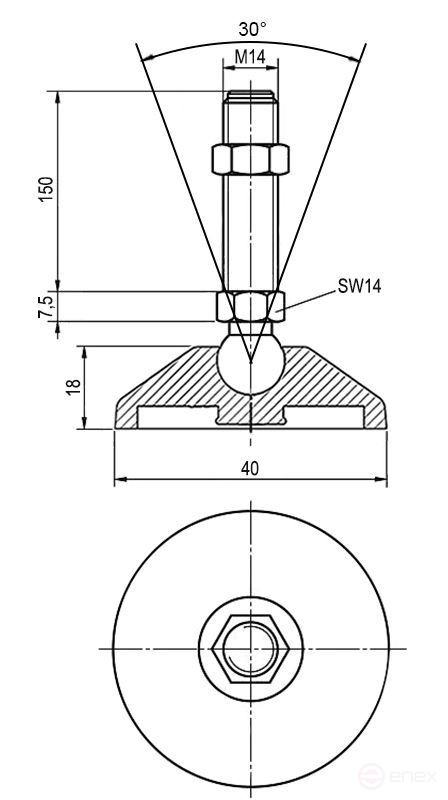 Регулируемая опора M12x45 до 100 кг, нерж. сталь, под крепёж Алтервиа A00022.1212012045