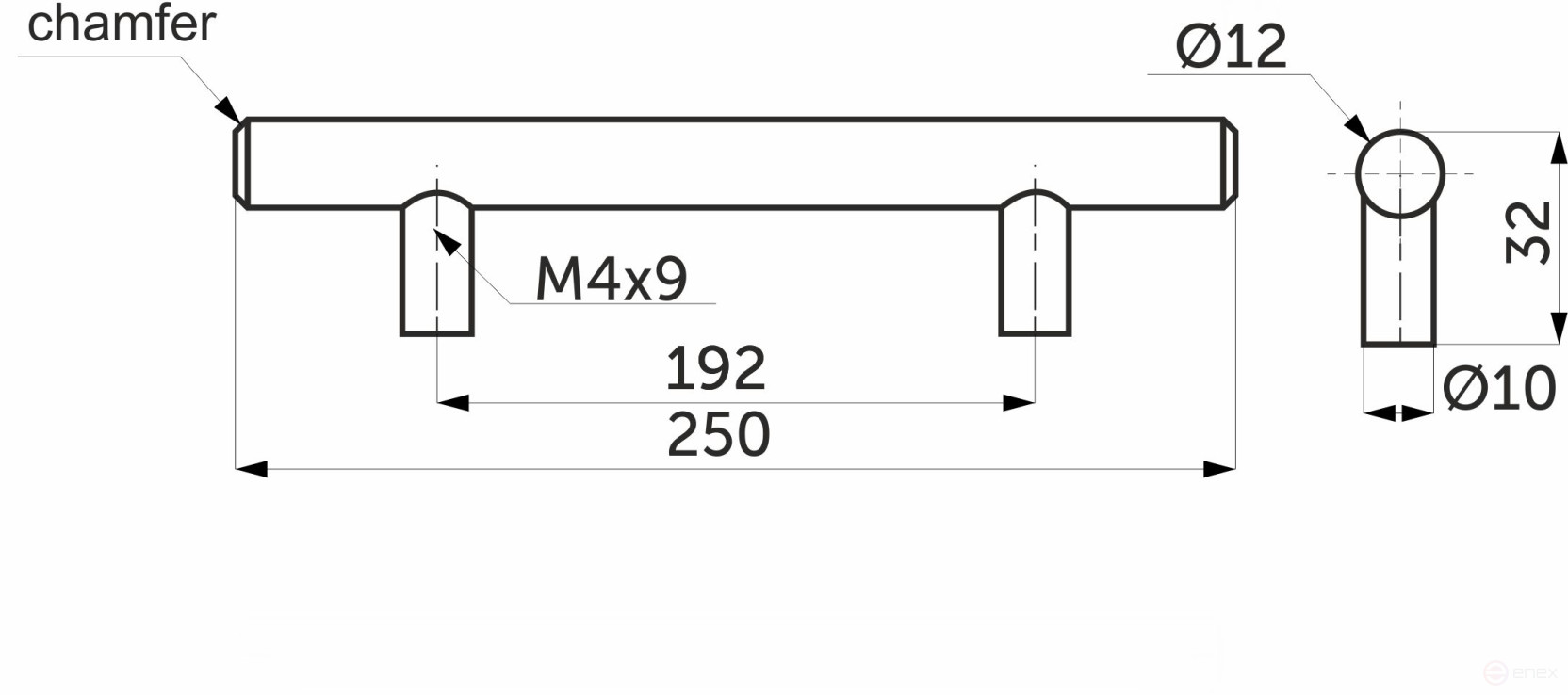 Ручка меб. релинговая 192/250 полая сталь шлифованная сталь AKS