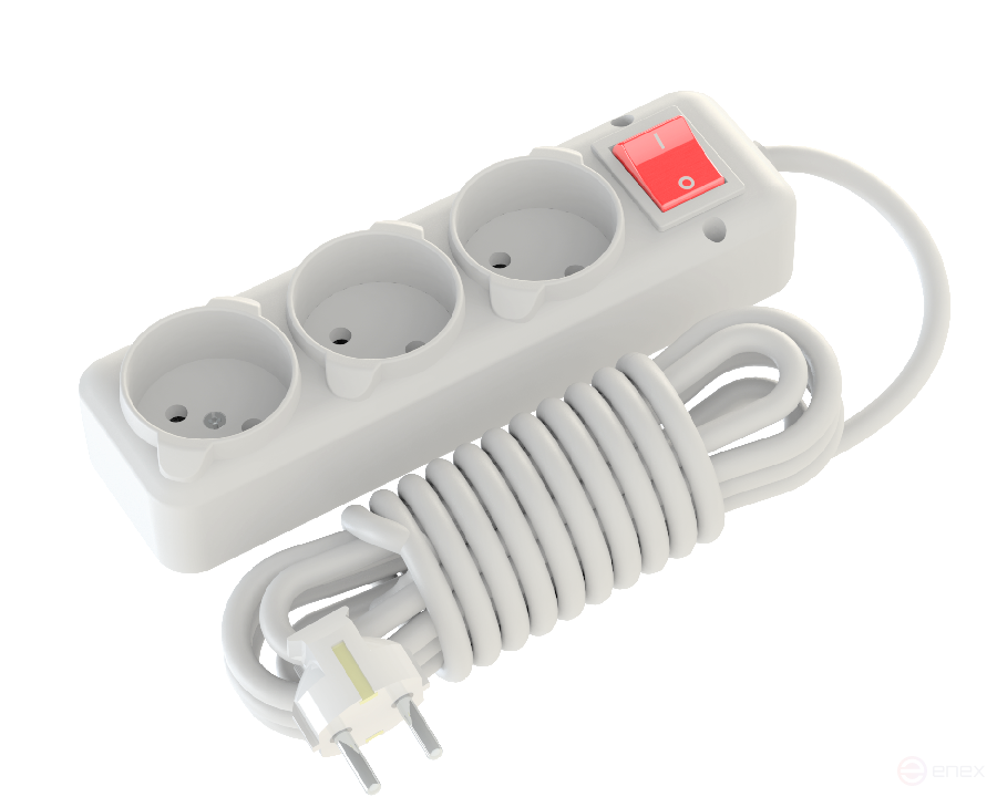 Удлинитель сетевой NE-AD без заземления с выключателем, 3 гнезда, 3 метра