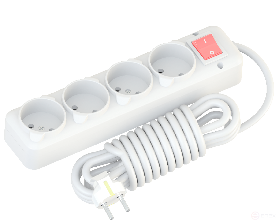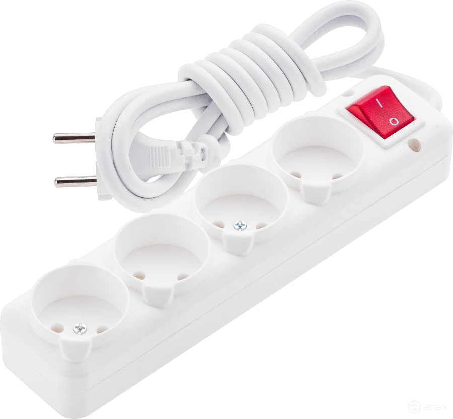 Удлинитель сетевой NE-AD без заземления с выключателем, 4 гнезда, 3 метра