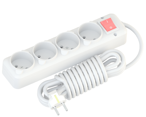 Удлинитель сетевой NE-AD без заземления с выключателем, 4 гнезда, 5 метров