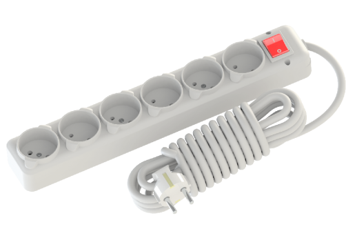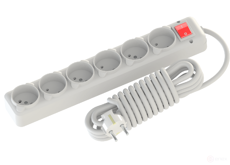Удлинитель сетевой NE-AD без заземления с выключателем, 6 гнезд, 5 метров