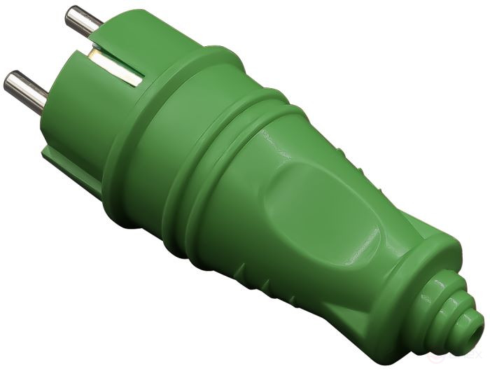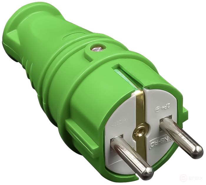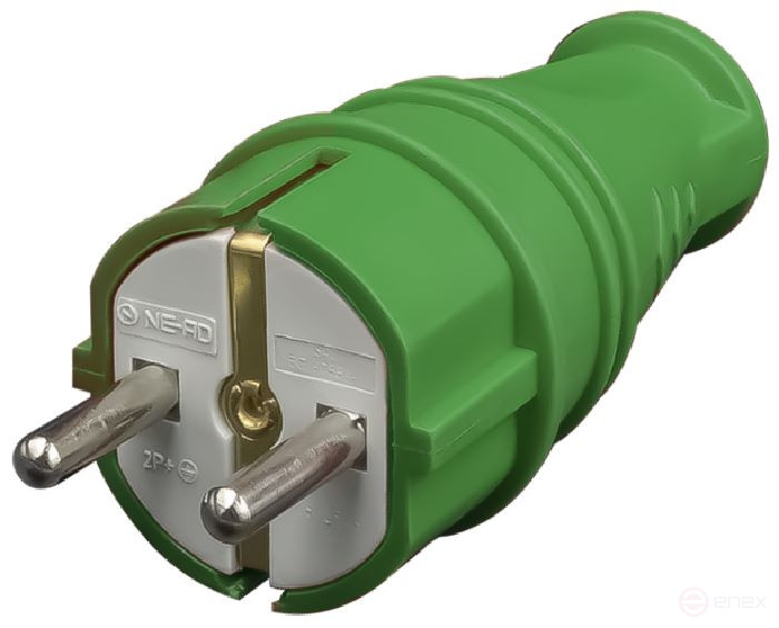 Вилка штепсельная NE-AD прямая, с заземлением, зеленая, каучук