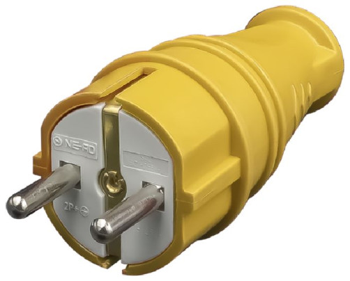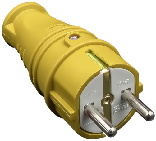 Вилка штепсельная NE-AD прямая, с заземлением, желтая, каучук