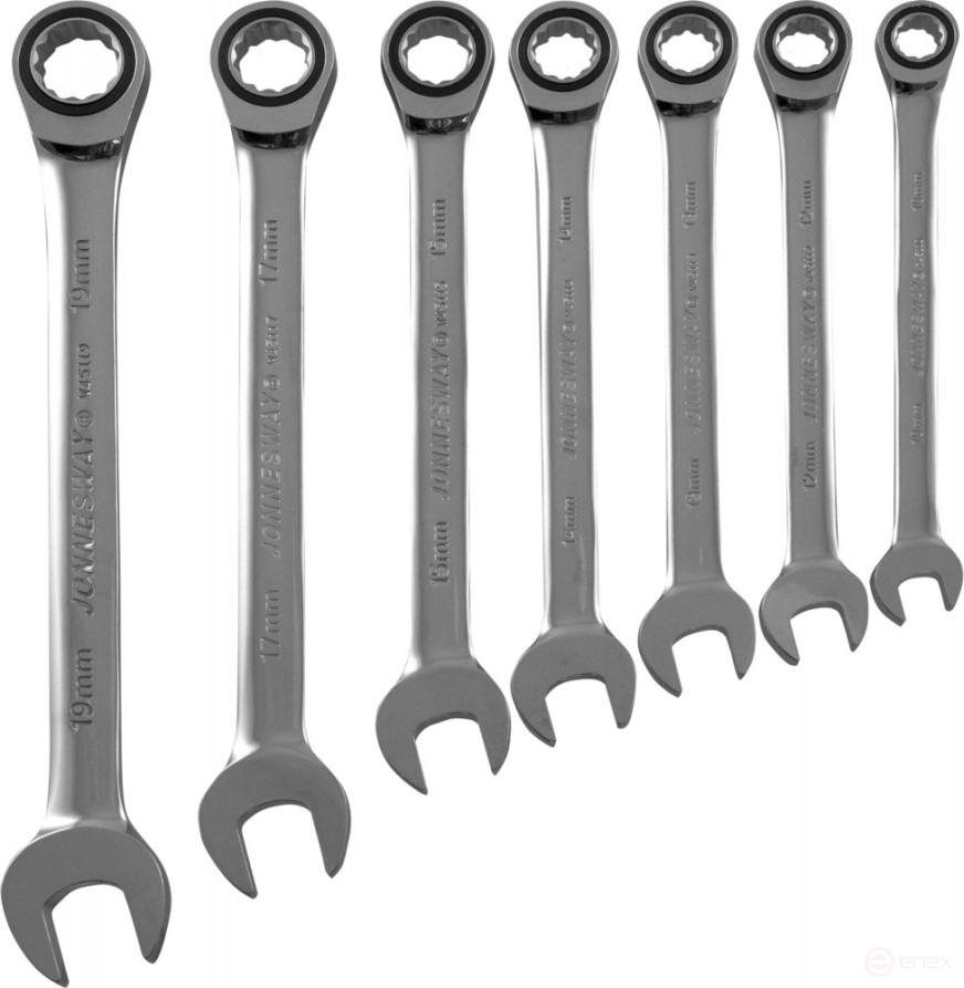 W45107S Набор ключей гаечных комбинированных трещоточных на держателе, 10-19 мм, 7 предметов